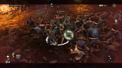 Camera cuts to the front gate of the city. The Viking horde slaughters all Samurai that stand in their way, setting fire to buildings and looting resources.