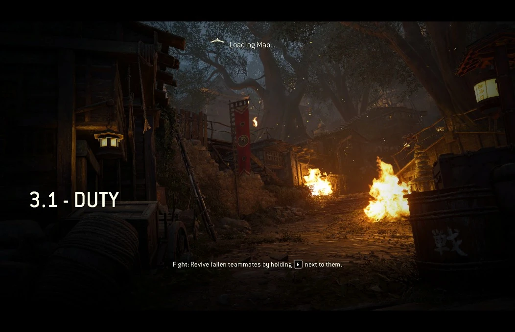 Duty is the first chapter in the Samurai Story Campaign. Completion of the Knight and Viking campaigns are required before the Samurai story becomes available. The Vikings have invaded the Imperial City and the Emperor is dead. Buildings are on fire and the Vikings are ransacking and plundering. The Orochi has been freed from the prison by Okuma, Ayu and Momiji. The Orochi leads the fight to take back the city.
