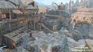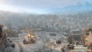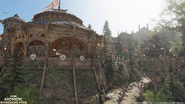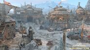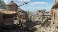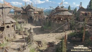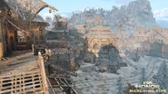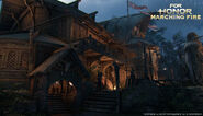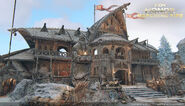 Inside the Fortress, on the left side, there are lookouts and even a meeting chamber built into the cliff face. These locations work as the archer points for this part of the map. A tower near the gate holds the shield banner. On the other side is a demolished stave church where the Guardian resides. The healing zone is right outside the church.