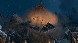 - Be sure not to miss the destroyed warship on the other side of the sloped path from the hanged man. Look to the dragon head on the front end to get the Observable.