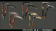 Kusarigama - The traditional Japanese weapon consists of a kama (Japanese sickle) with a chain-and-weight attached. It is brutal in close quarters but can also be thrown and retracted for medium-distance attacks.