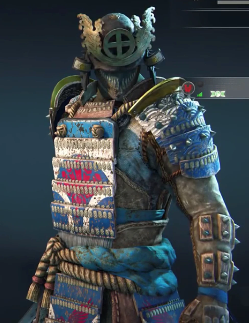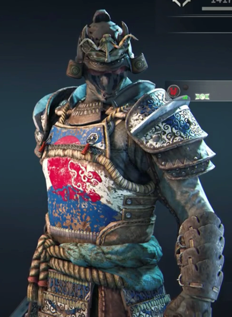 - The first Orochi model is equipped with the "Tidal Wheel" ornament, featuring the mon (clan emblem) of the Shimazu clan.